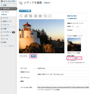 (『サムネイル設定』は『すべての画像サイズ』のままで構いません)