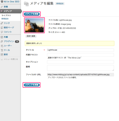 『メディアを更新』をクリックして編集を完了してください。