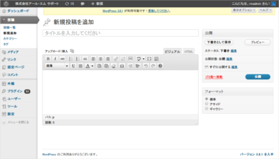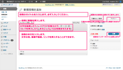 ここでは 『投稿』 メニューの 『新規追加』 について説明いたします。