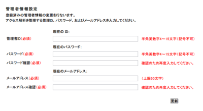 初期値のログイン情報でアクセス解析にログインしていただけます。