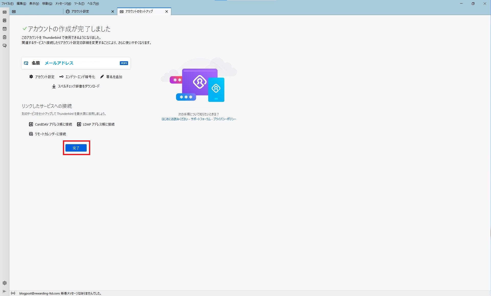⑥設定が完了しました! 『完了』をクリックしてください。