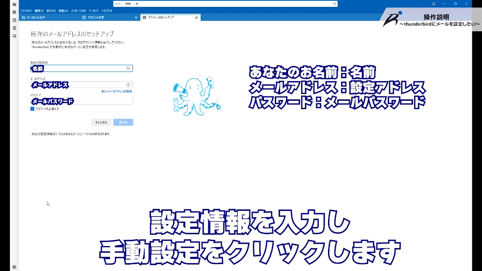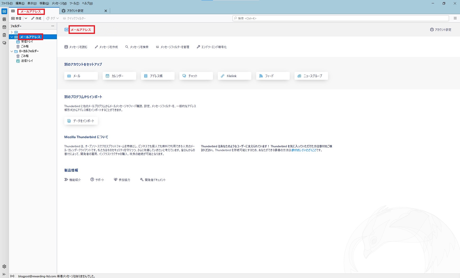 thunderbirdにメールを設定する方法をご案内します。