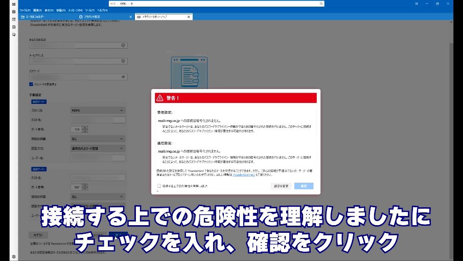 ⑤『接続する上での危険性を理解しました』にチェックを入れて『確認』をクリック