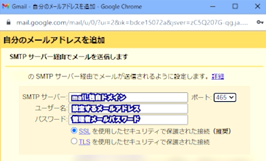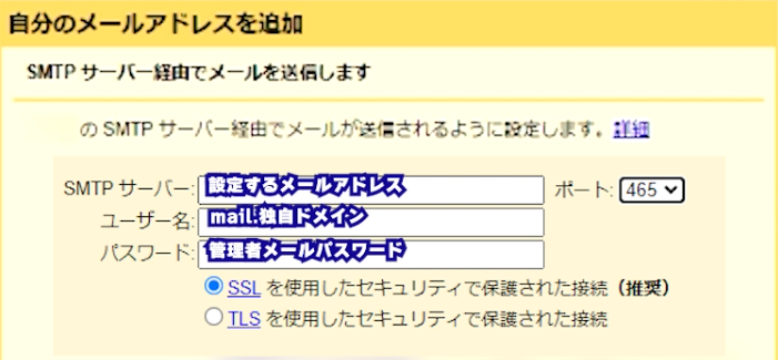 ポート:465を選択