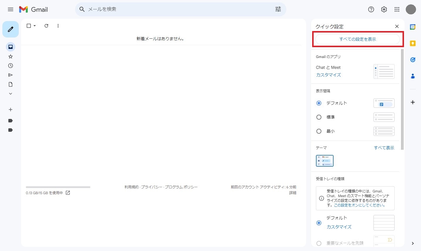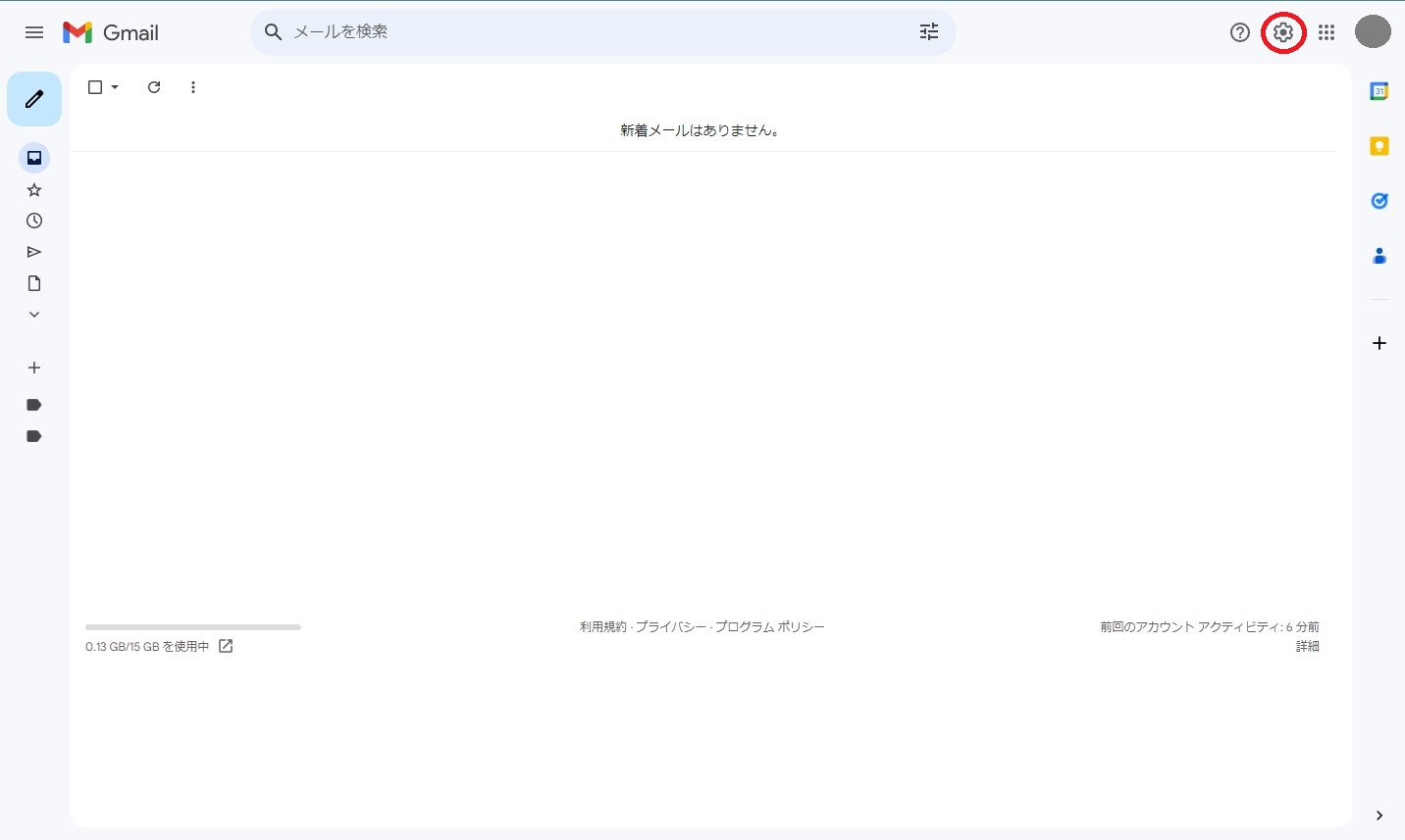 ①Gmailを開き、左上にある歯車のマークをクリック