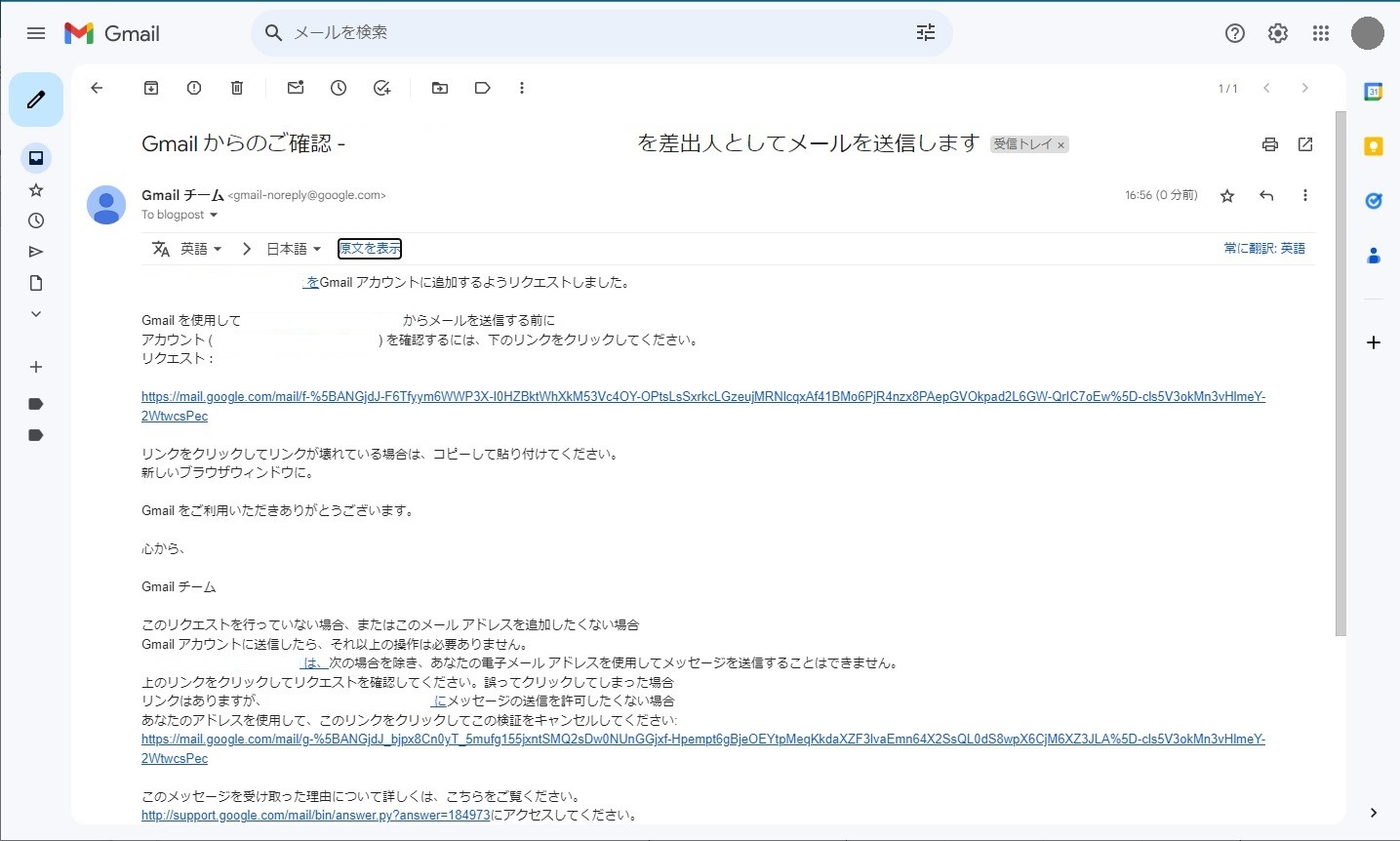 ⑫Gmailから下図のようなメールが届いていればOK!
