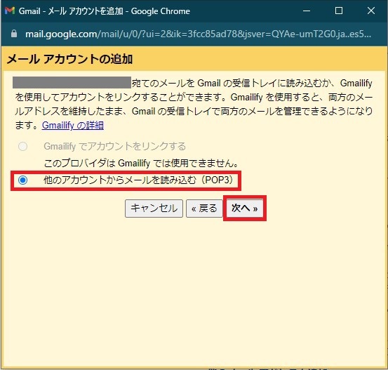 ⑥他のアカウントからメールを読み込む(POP3) を選択し 次へ をクリック