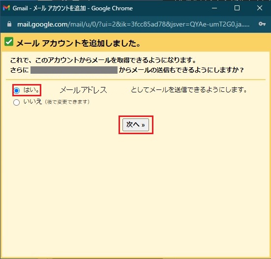 ⑧設定するメールアドレスからメールの送信もできるようにしますか?は はい を選択してください。