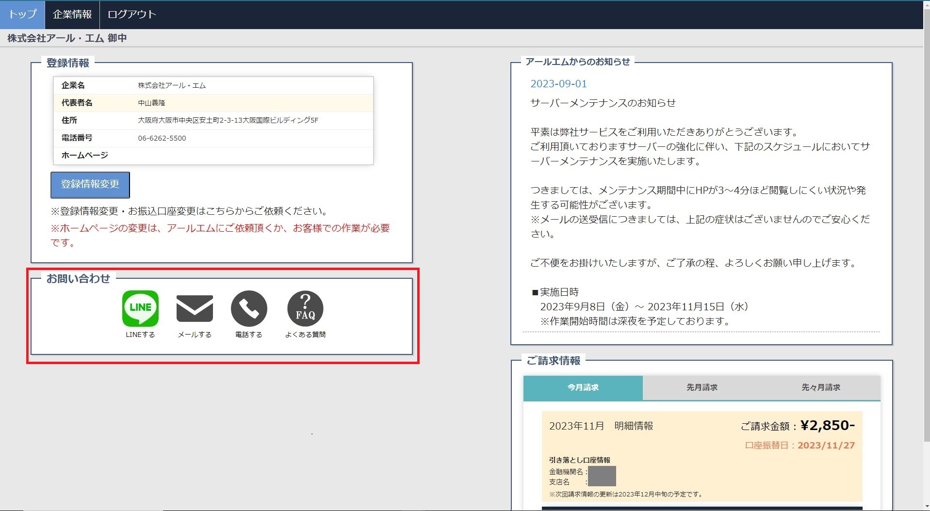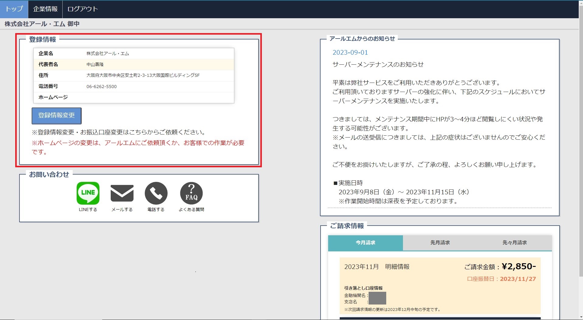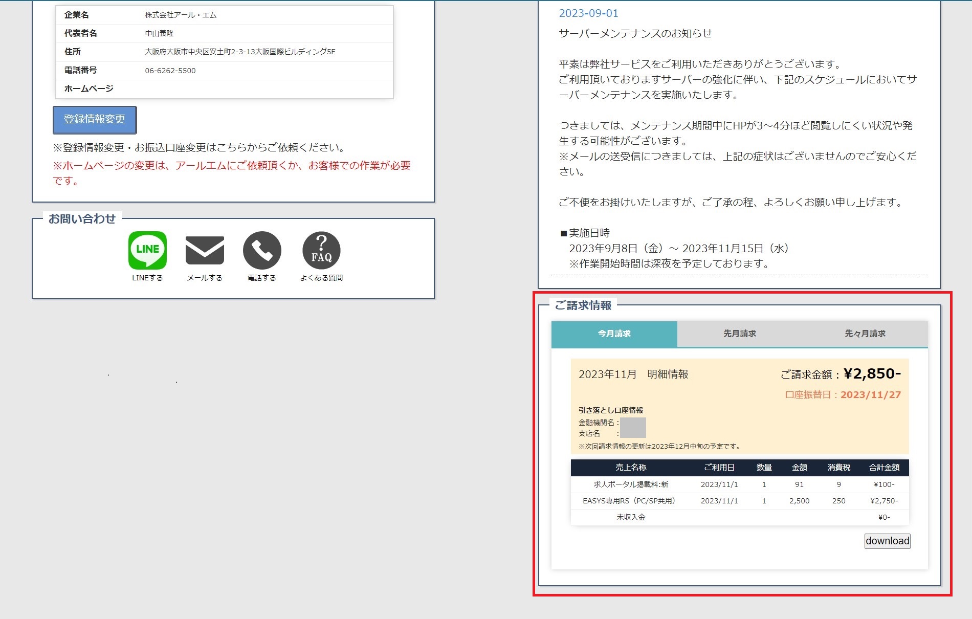 #マイページ #インボイス登録番号 #請求金額 #登録情報変更 #お問い合わせ #請求書 #口座振替