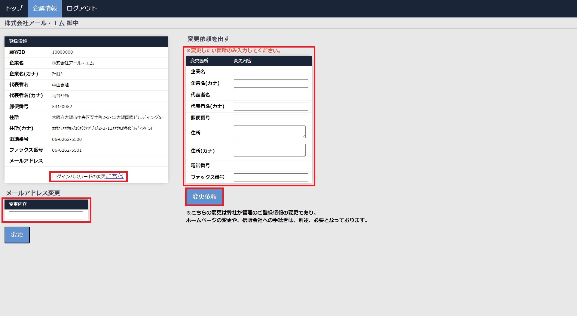 ご契約時にいただいたお客様の企業情報をご確認いただく事が可能です。